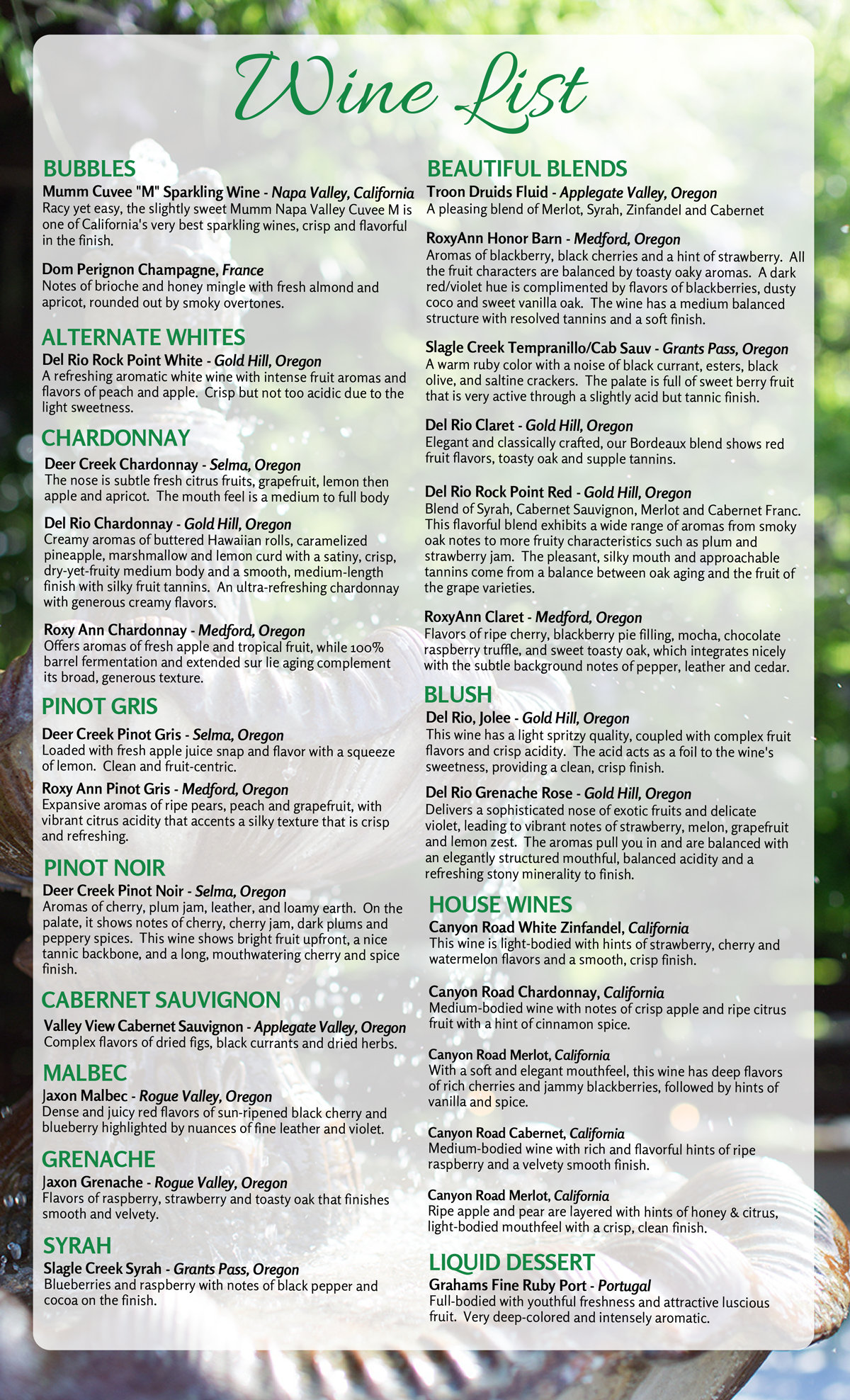 Our menu proudly features locally sourced meats and fresh local seasonal produce. *Consuming raw or undercooked meats, poultry, seafood, shellfish, or eggs, may increase your risk of foodborne illness, especially if you have certain medical conditions. $2 split plate charge.